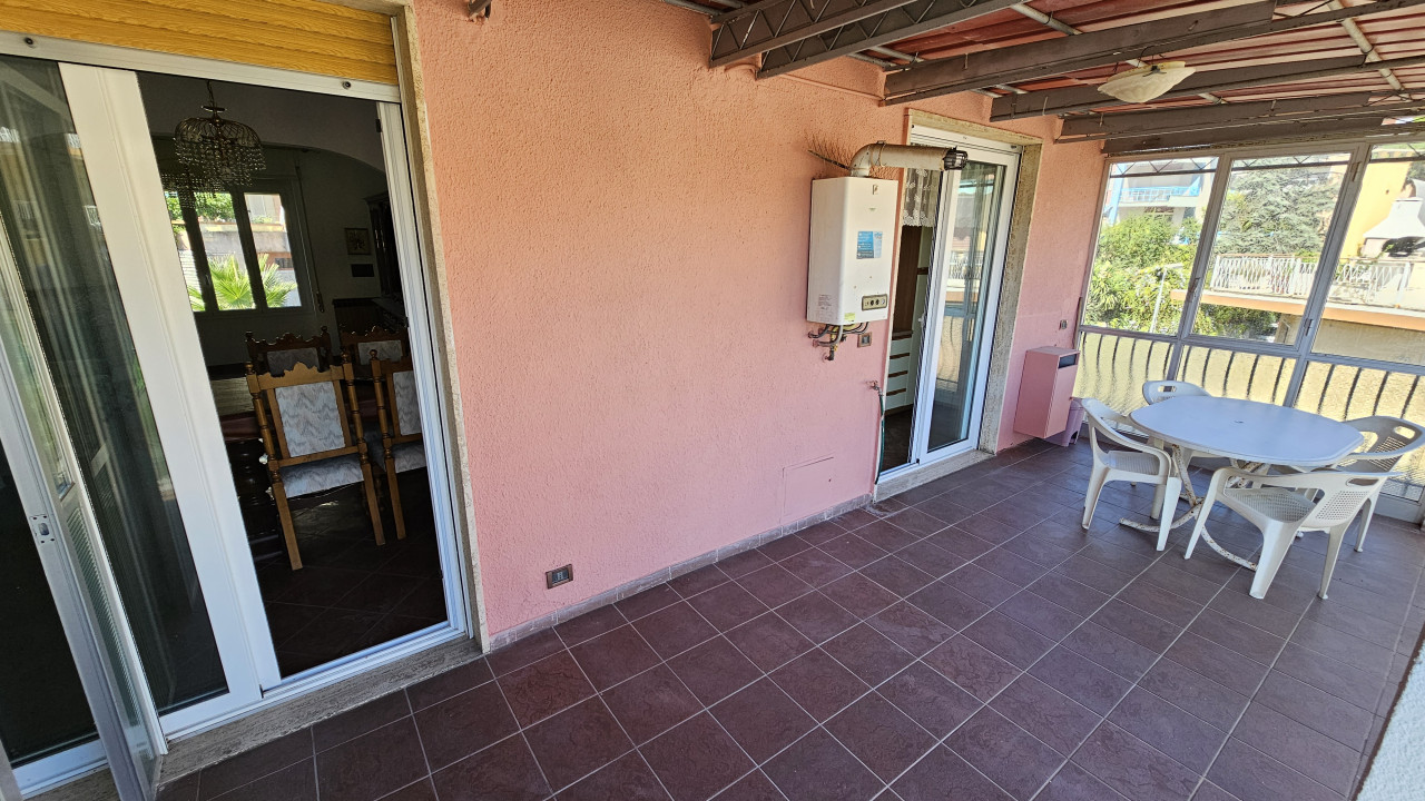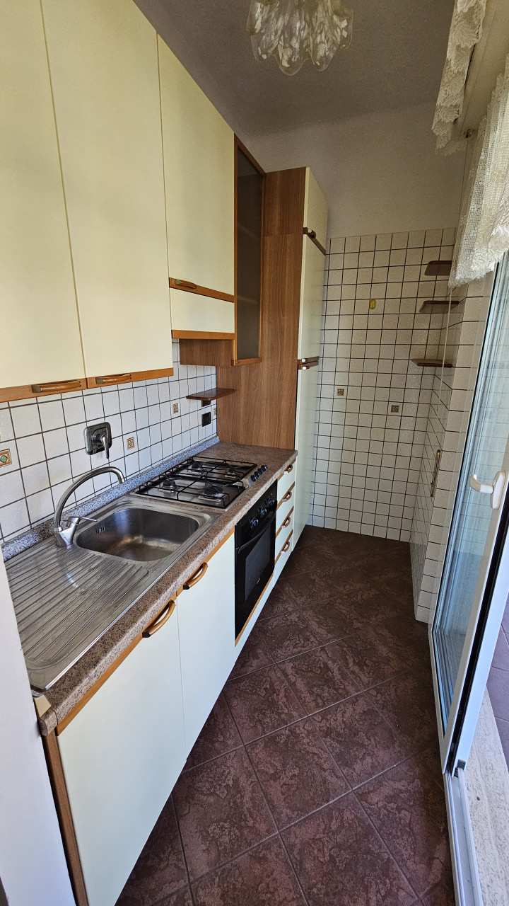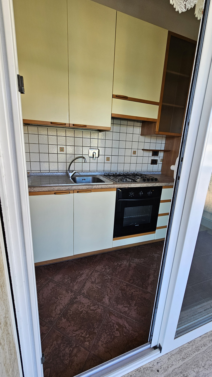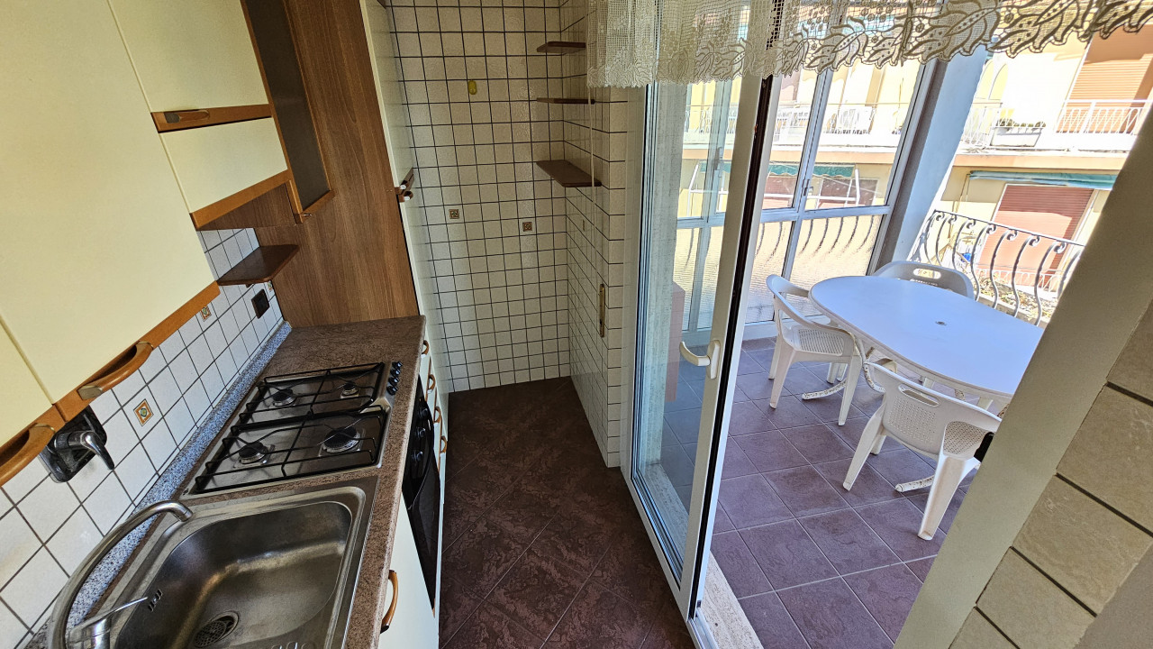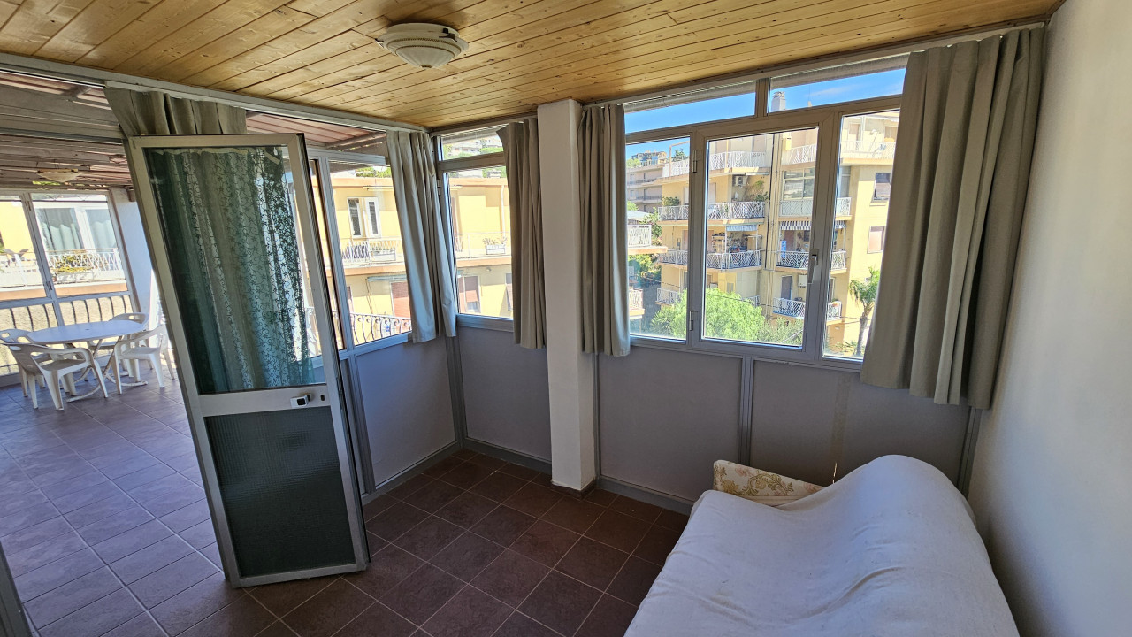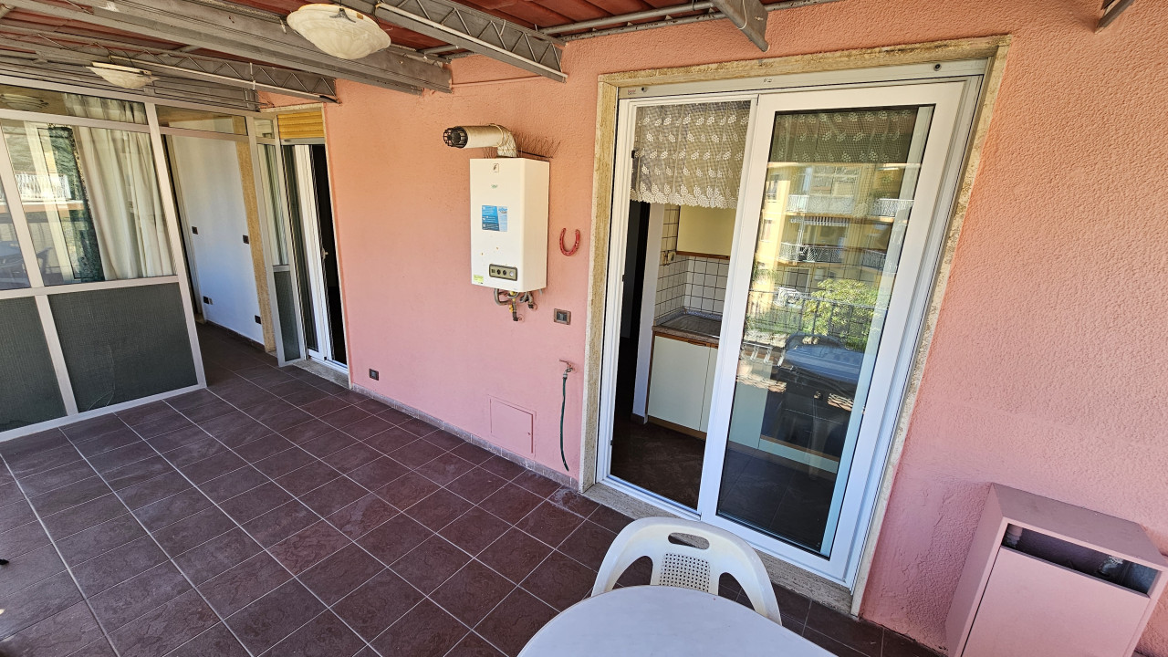 Si accede sull'ampia zona giorno dotata di camino e che con divano letto potrebbe esser sfruttata anche come ulteriore zona notte, camera da letto con balconcino sul retro, cucinino, grande terrazzo coperto con veranda autorizzata dove poter ricavare una seconda camera, bagno finestrato con doccia e lavatrice, comoda cantina e posto auto in cortile.