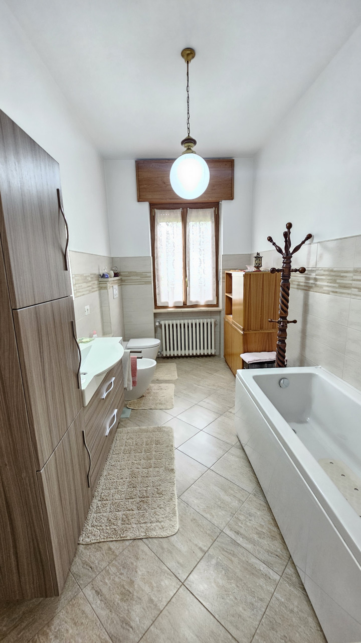 Al piano terra troviamo la taverna con forno a legna e camino, due box auto, cantina, locale di sgombero, secondo servizio e locale tecnico con la caldaia a condensazione recentemente sostituita.