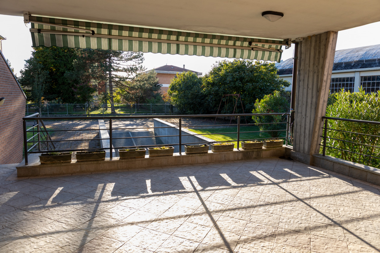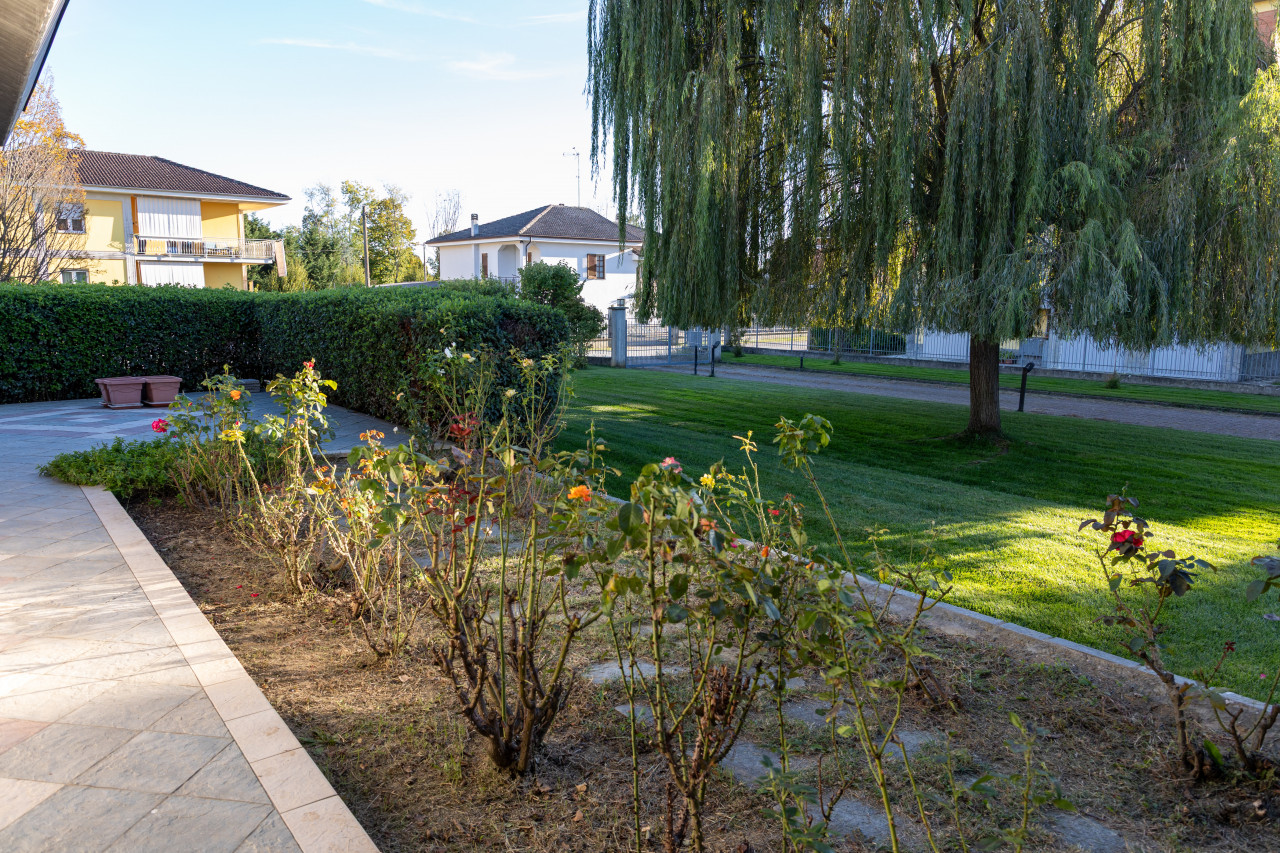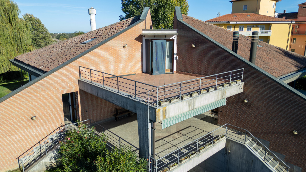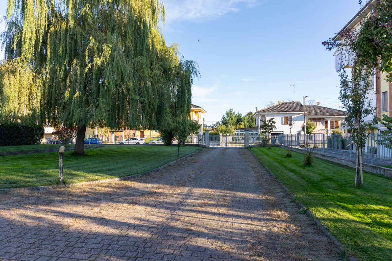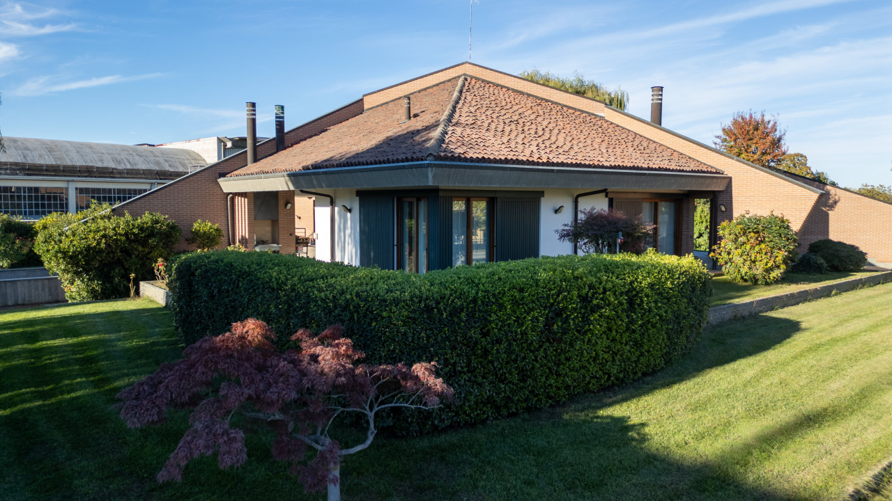 Muri esterni in mattoni paramano, percorso autovetture e cortile in autobloccanti, rampa per la discesa nel seminterrato riscaldabile per evitare il ghiaccio nel periodo invernale così da rendere sicuro l'accesso anche nella fredda stagione. Tutto il seminterrato è protetto da una intercapedine che evita l'umidità di risalita in casa. Cancello su strada e portone del seminterrato automatizzati.
