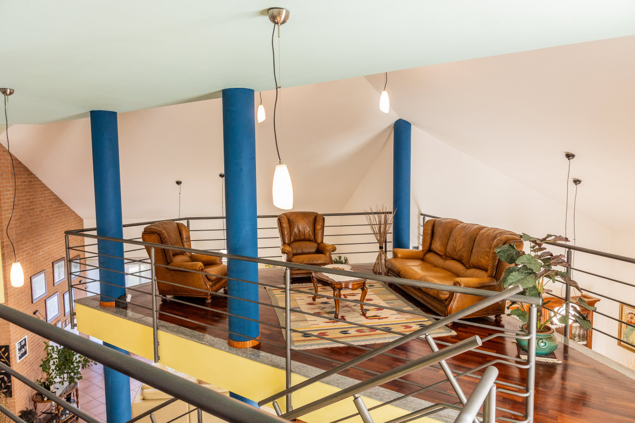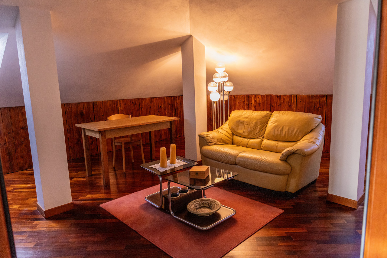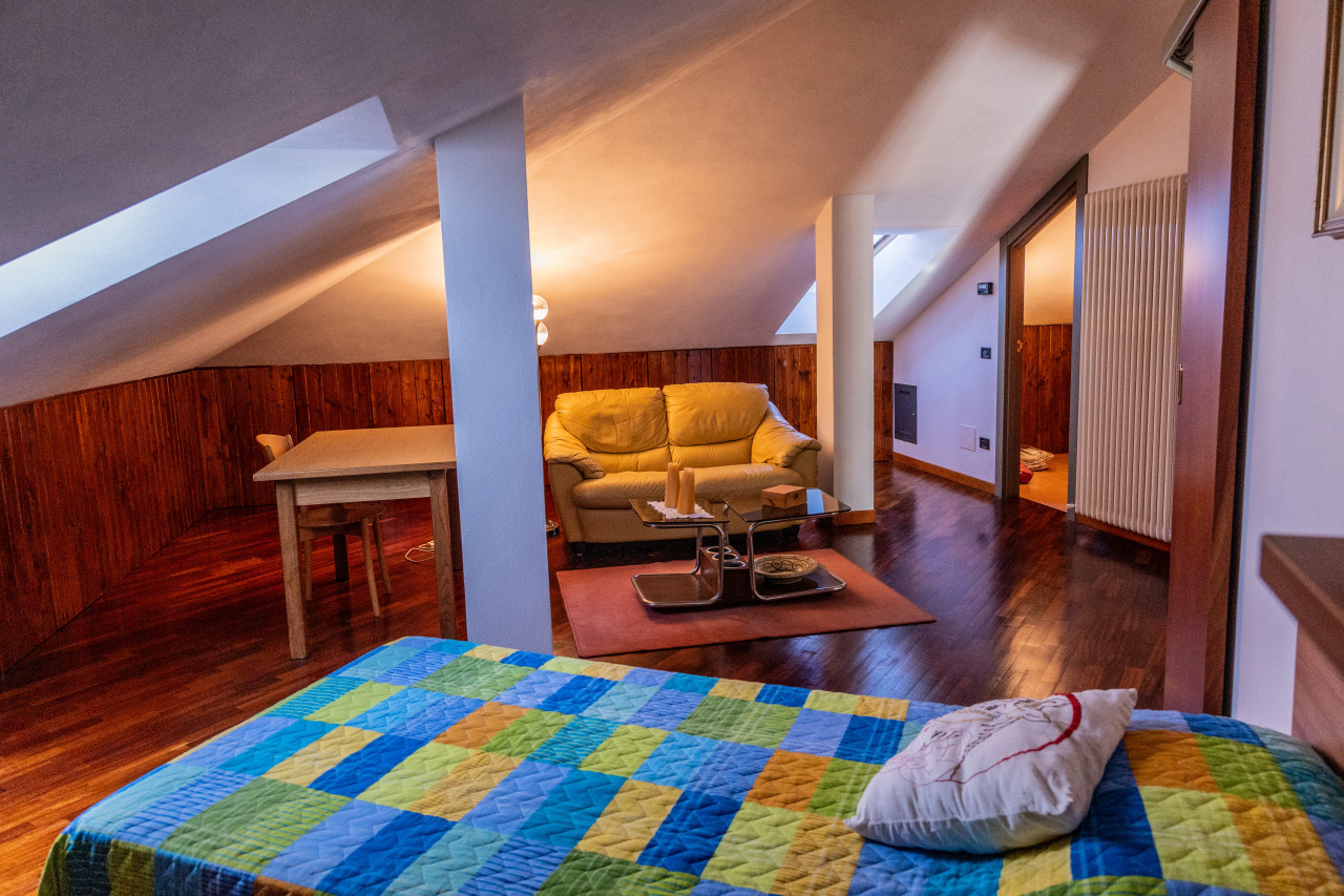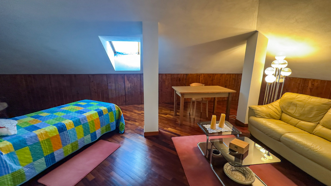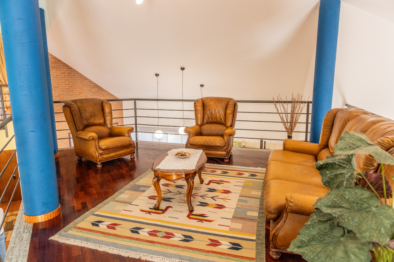 Si accede dall'ingresso sull'ampio ed alto doppio salone dotato di camino rivestito in marmo su parete di mattoni con faccia a vista e zona pranzo conviviale dal quale uscire sul terrazzo con tende da sole, cucina abitabile, disimpegno verso la zona notte con tre spaziose camere, bagno con vasca e servizio con doccia. Vicina all'ingresso la comoda lavanderia. Centralmente la scala a vista con mancorrenti in ferro conduce al piano primo dove a soppalco troviamo il secondo salotto, lateralmente la quarta stanza mansardata da adibire a studio o quarta camera con annesso terzo servizio pronto per esser arredato, grande terrazzo sul retro sopra a quello del pianto terra e terrazzino sul fronte.