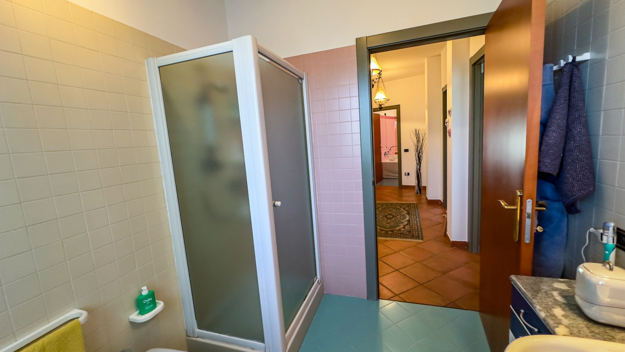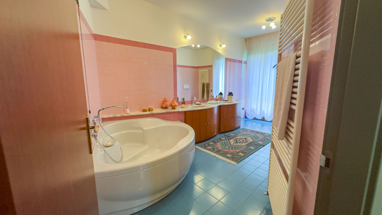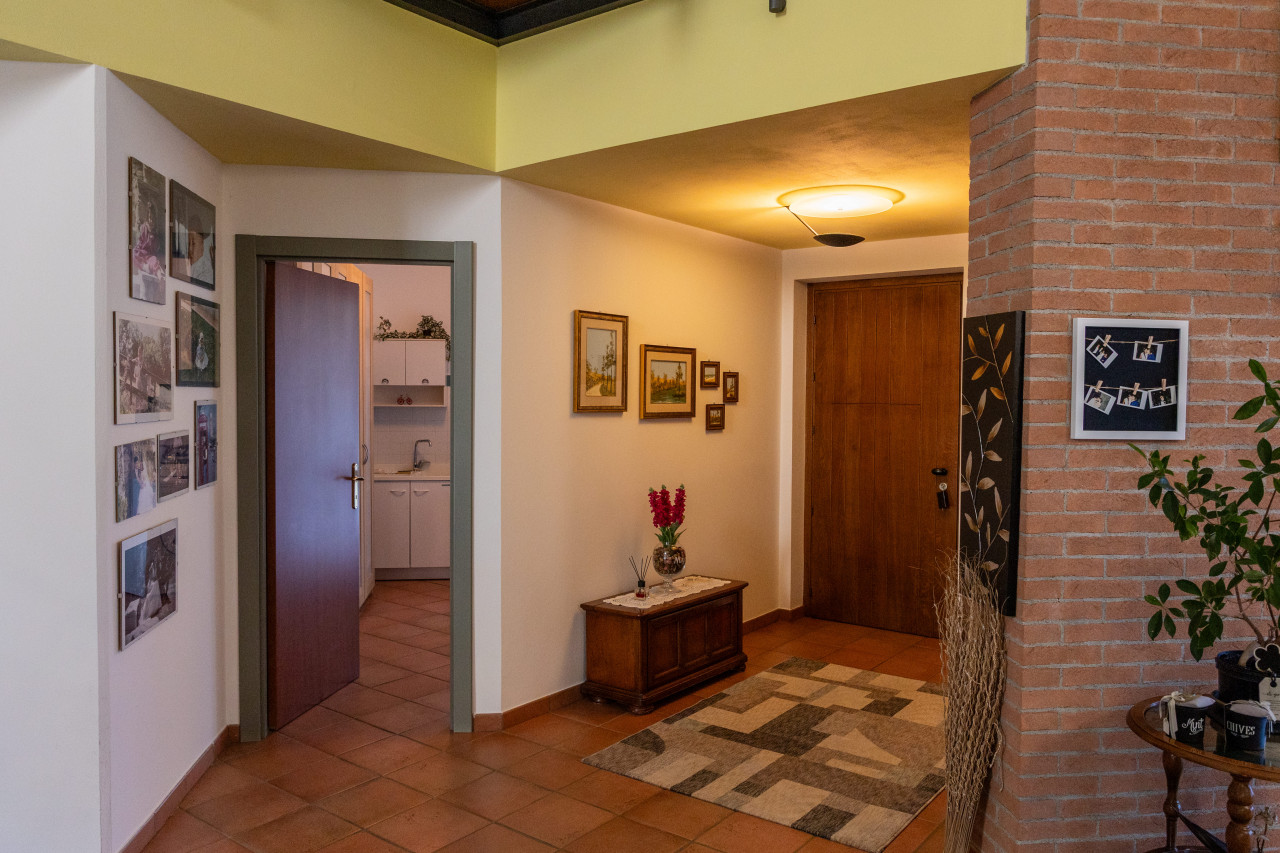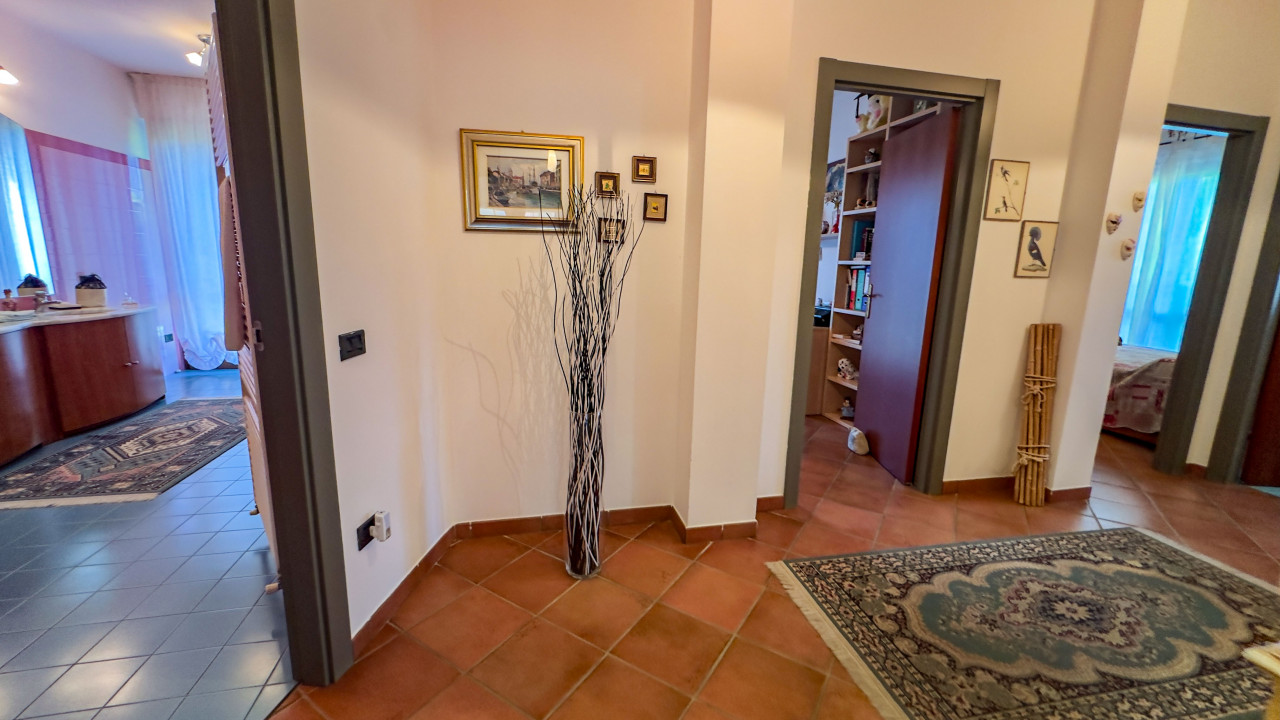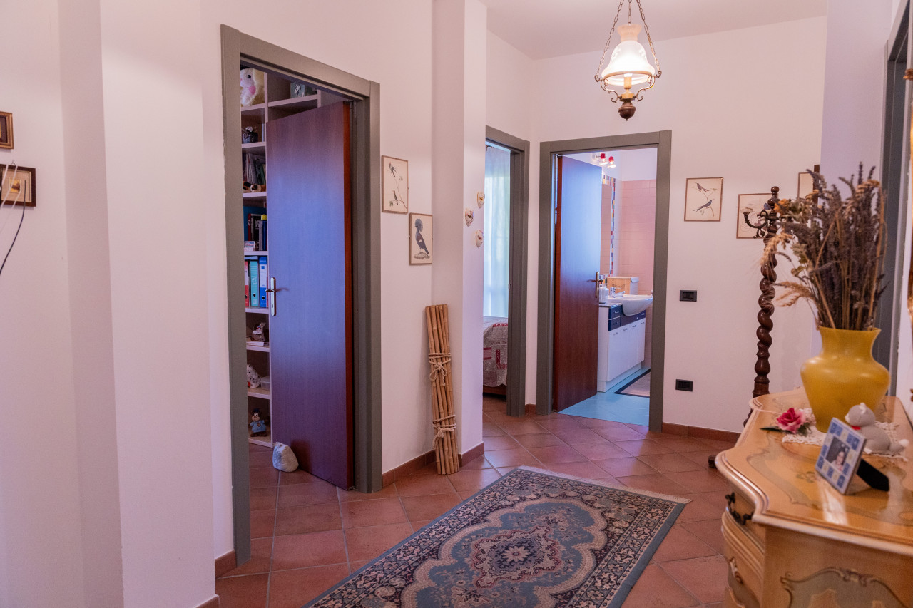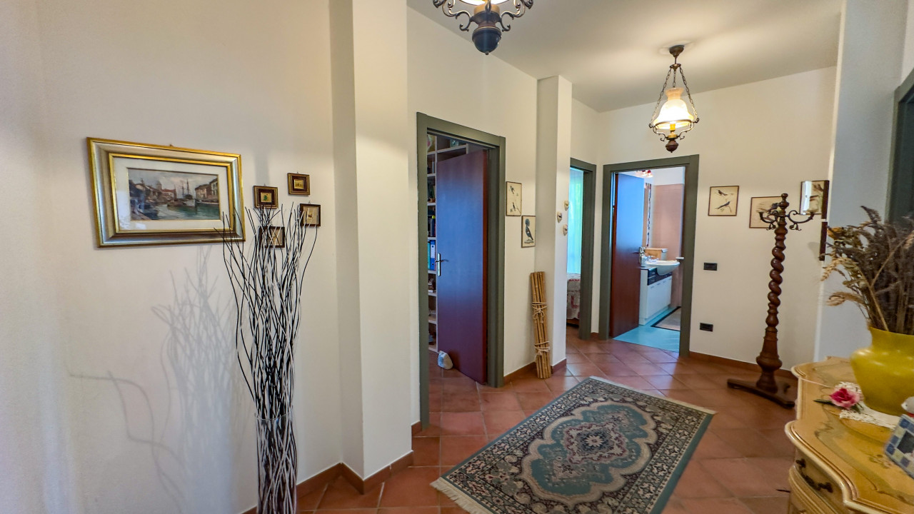 La villa ha pavimenti in Cotto d'Este al piano terra mentre il parquet riveste dalla scala a salire l'intero piano primo.