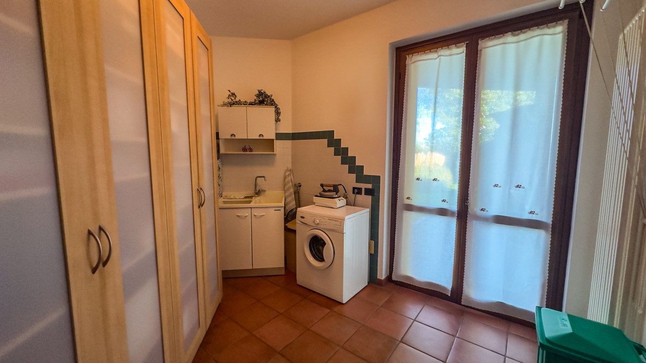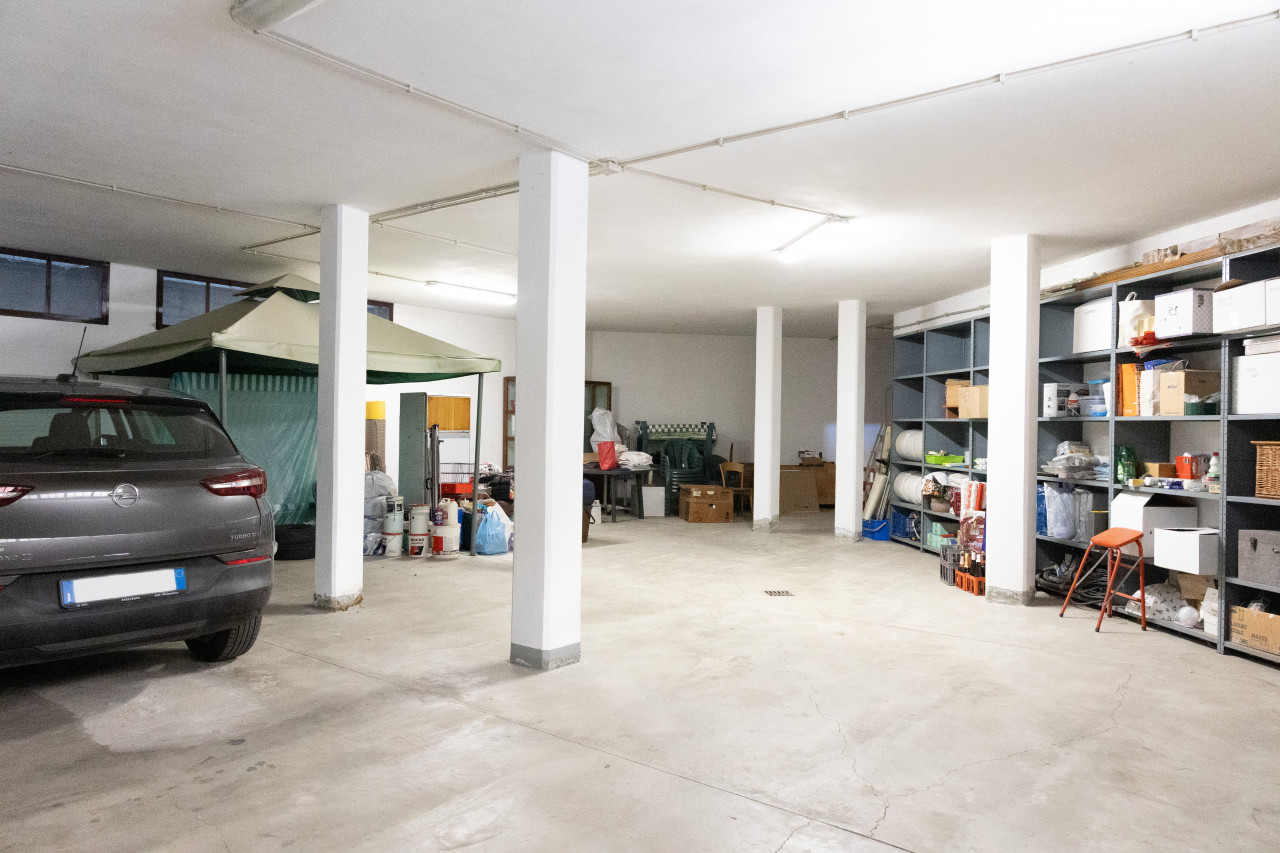 Scendendo nel seminterrato troviamo un box auto comodo anche per quattro autovetture, la cantina, tre grandi locali ad uso sgombero dove volendo una tavernetta potrebbe trovarne utilizzo come anche una seconda lavanderia.