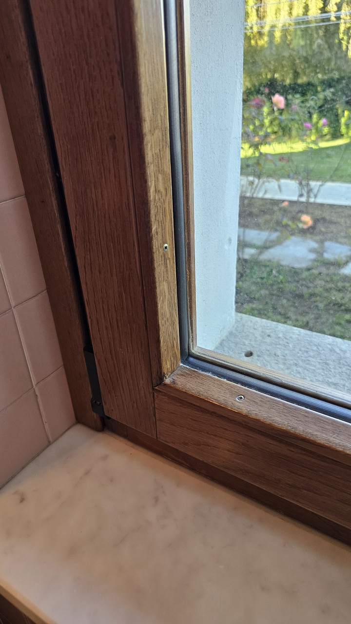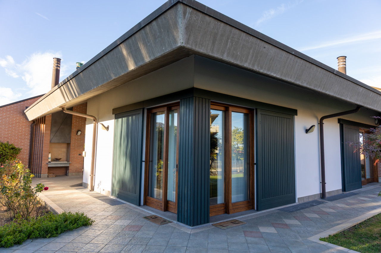 Gli infissi sono in legno con vetrocamera, molte porte interne sono a scrigno, le persiane sono a scorrimento orizzontale.