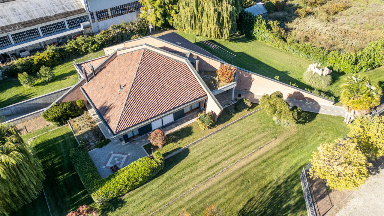 L'immobile tagliato architettonicamente in moderno ed unico stile ha superficie totale di 500mq divisa su tre livelli mentre il terreno su cui poggia di 5.200mq si compone di giardino, prato ed orto.
