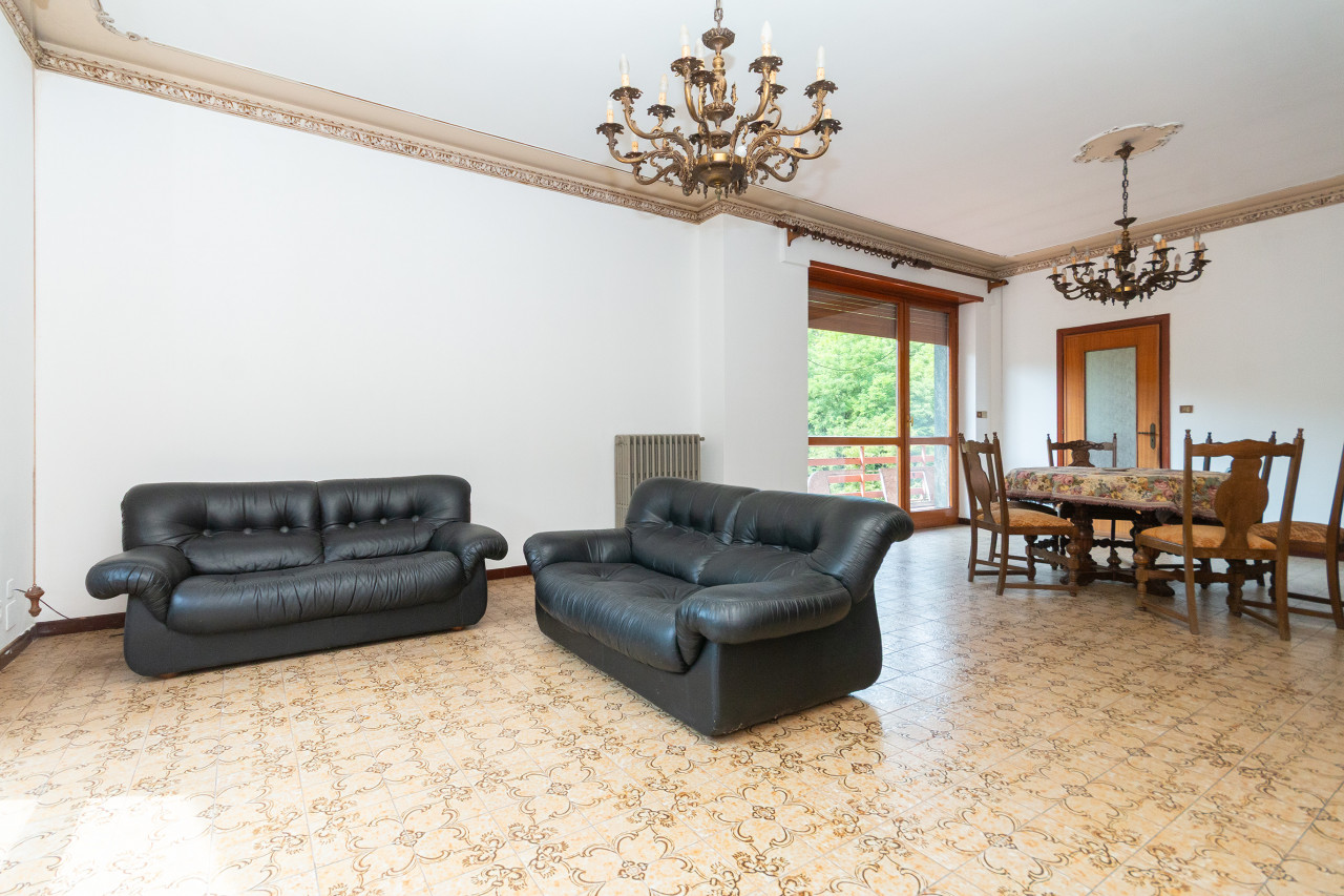 Appartamento quadrilocale al piano secondo ed ultimo di 155 metri quadrati, privo di ascensore, libero da tutti i lati, composto di: un ingresso, una cucina abitabile. un salone doppio di mq 40 con zona soggiorno e e zona pranzo con ampie vetrate, dotate di avvolgibili elettrici, due camere da letto, un disimpegno e servizio igienico sanitario dotato di finestra, tre balconi e piccolo terrazzo posto a Sud, collegato con la zona giorno, al piano superiore, un' ampio locale sottotetto (non abitabile) ad uso deposito avente accesso diretto da vano scala, al piano terreno: un box auto di mq 18, con accesso dal cortile, un locale a uso deposito ed al piano primo giardino privato d'ampia metratura (mq 170) avente accesso dal pianerottolo del vano scala.