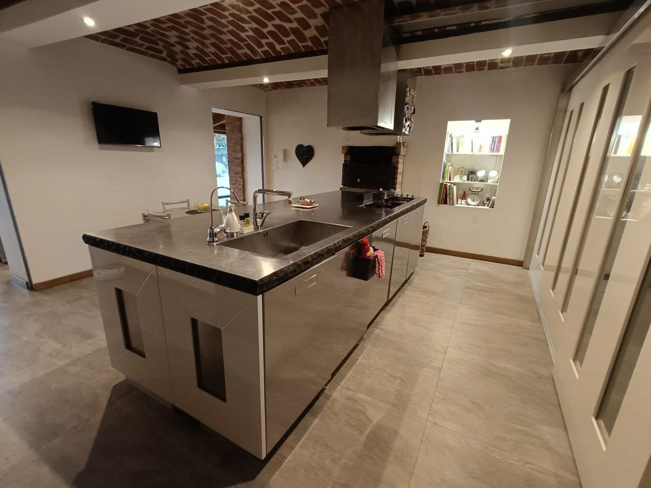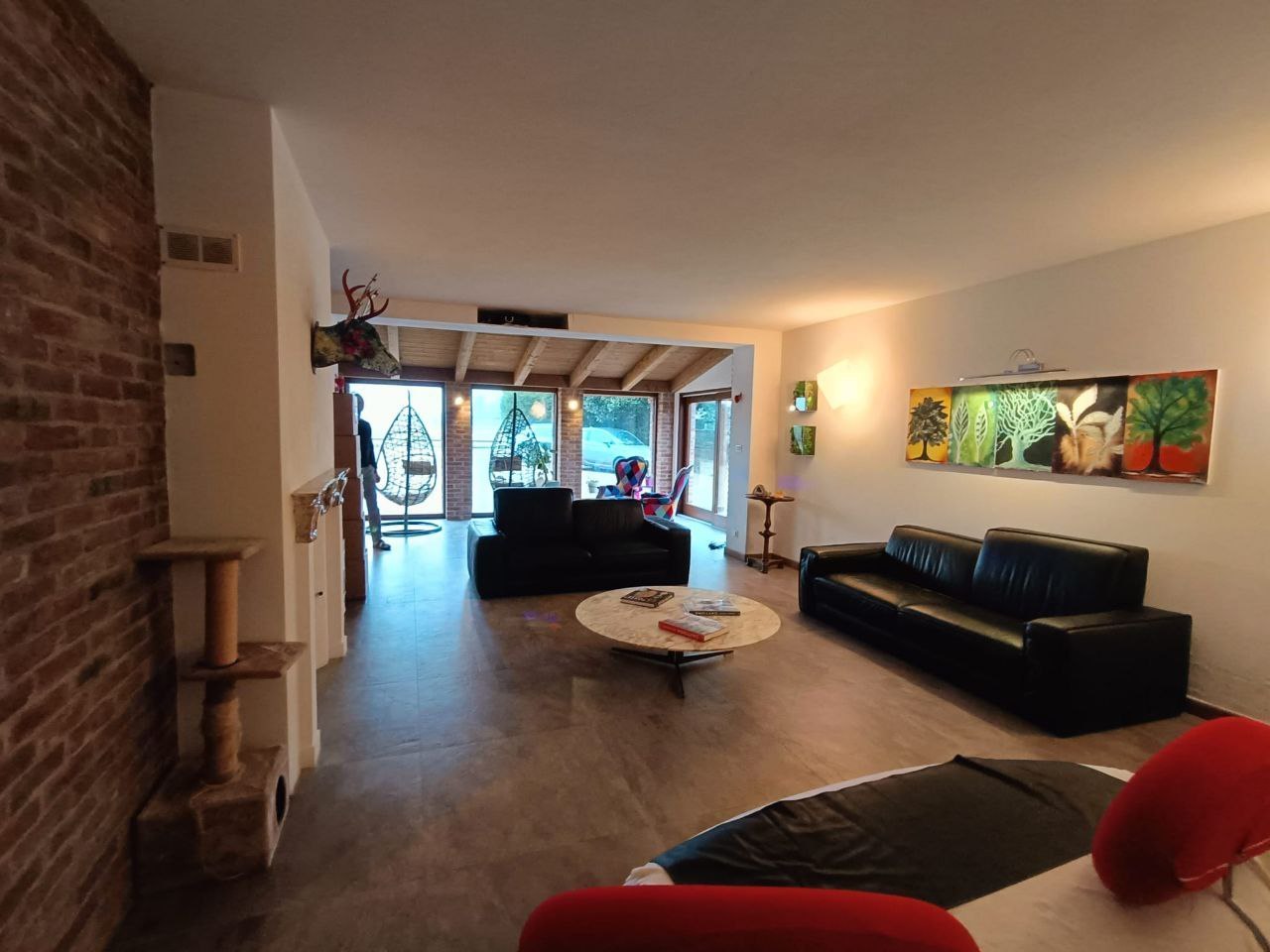 Varcando la soglia, sarete accolti da un'ampia e luminosa zona giorno, dove l'elegante camino crea un'atmosfera calda e accogliente. La cucina abitabile con isola centrale è un vero gioiello di design, perfetta per gli amanti della gastronomia e per chi ama intrattenere. La sala da pranzo, con il suo maestoso tavolo padronale, è ideale per cene conviviali con amici e familiari. Le grandi vetrate perimetrali inondano gli spazi di luce naturale, offrendo una vista suggestiva sul giardino e creando una connessione armoniosa tra interno ed esterno.